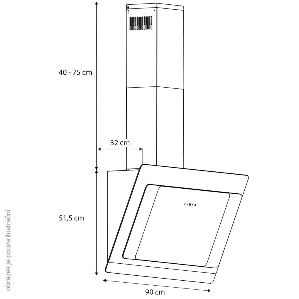 - Rozměry digestoře: cca 89 x 58 x 33,5 cm ((Š x V x H bez komínového krytu)
