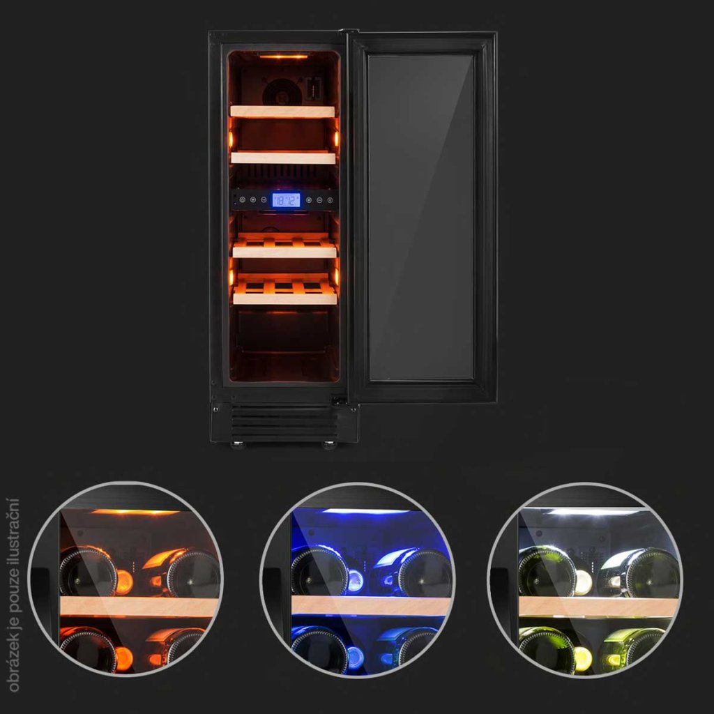 - volitelné vnitřní osvětlení v 3 barvách pro obě chladicí zóny červená, modrá a bílá