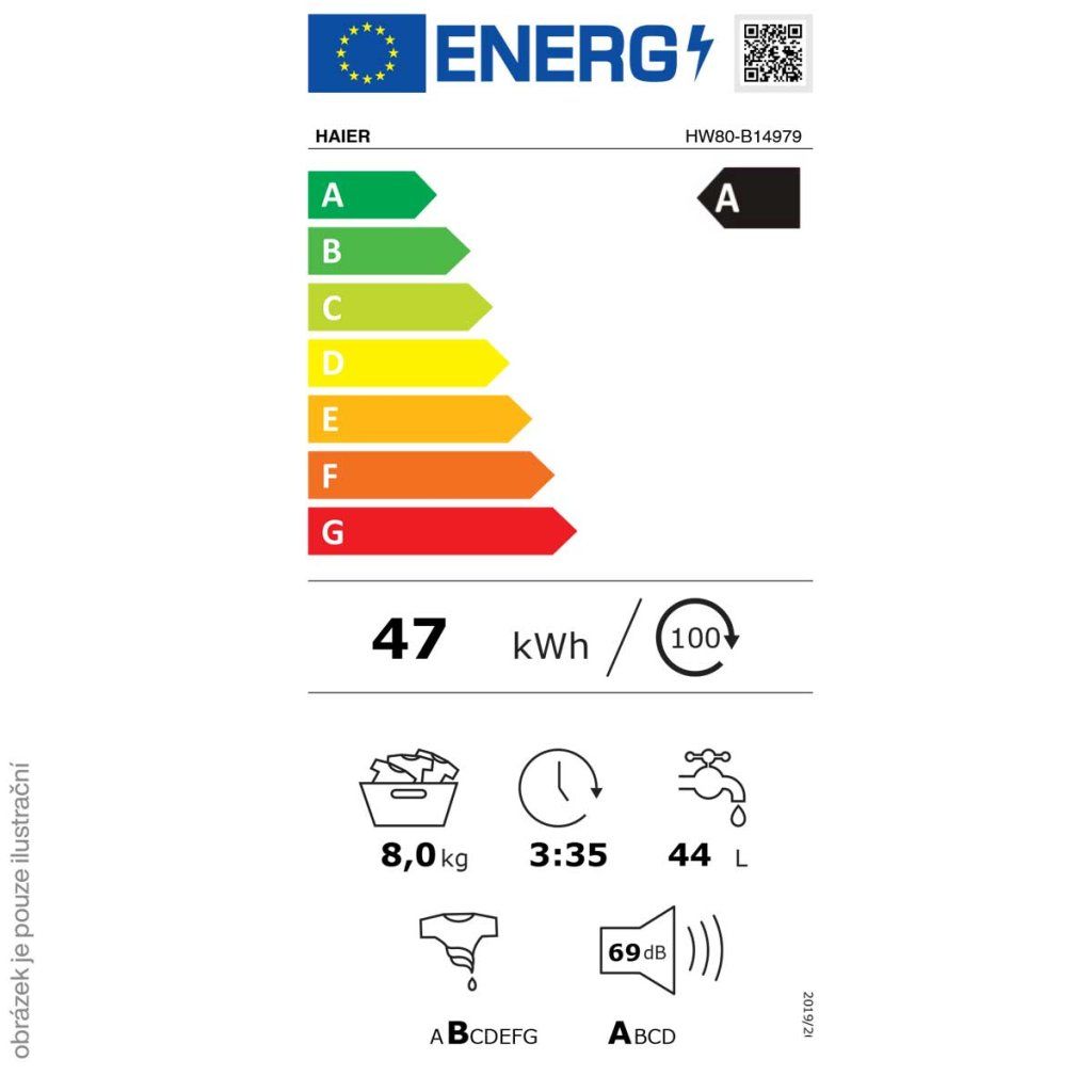 - Vážená spotřeba energie 100 cyklů, eco 40-60: 47 kWh / 100 cyklů