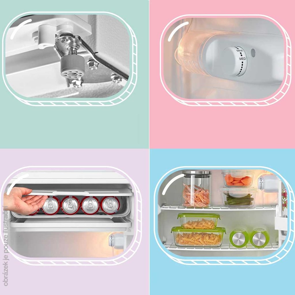 - mrazicí přihrádka: do -12 °C (Není určen pro intenzivní mražení – spíše pro kostky ledu a mraženou zeleninu, nikoli pro mražení velkého množství masa.)