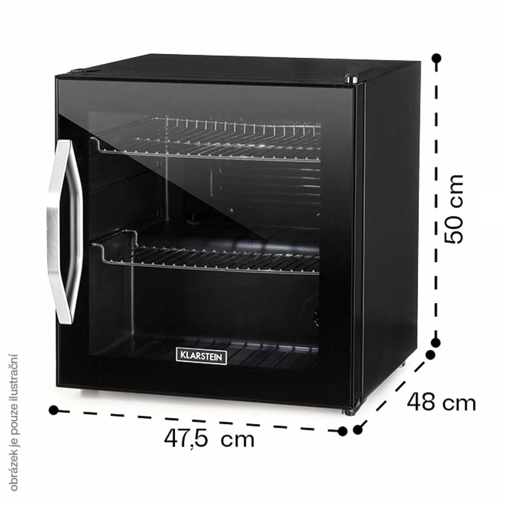 - Kompaktní lednice o objemu 47 litrů pro skladování lahví a plechovek