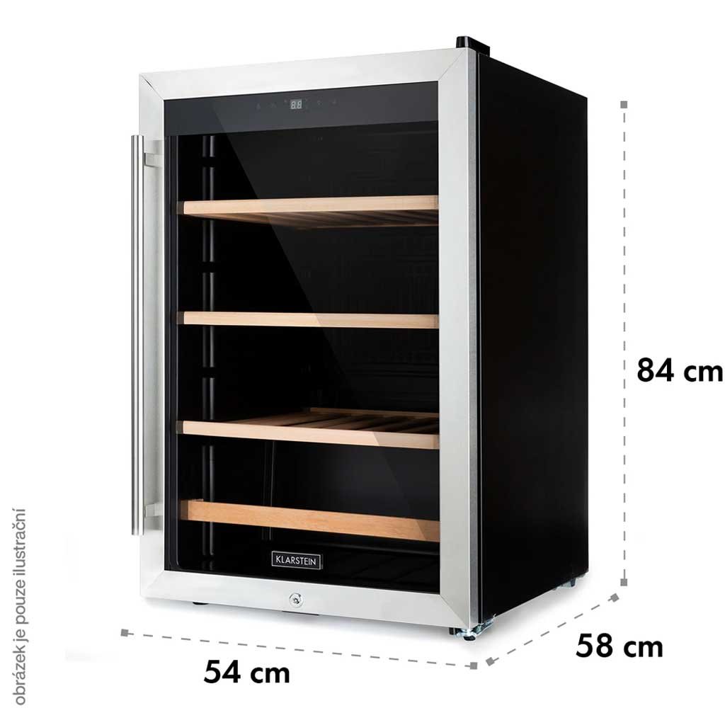 - Objem 128 litrů: pro 48 lahví vína