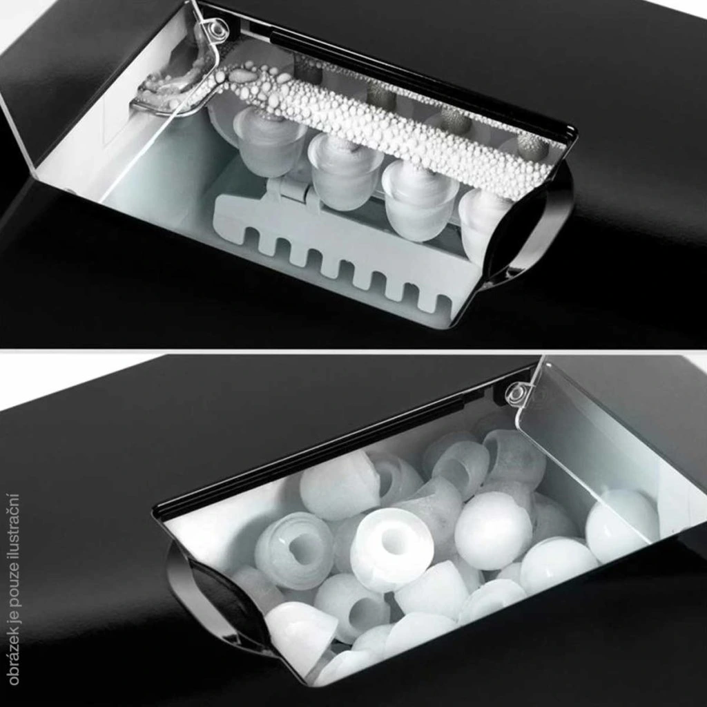 - Doba výroby: cca 6-12 min. - v závislosti na velikosti (odpovídá přibližně 9 kostkám ledu)