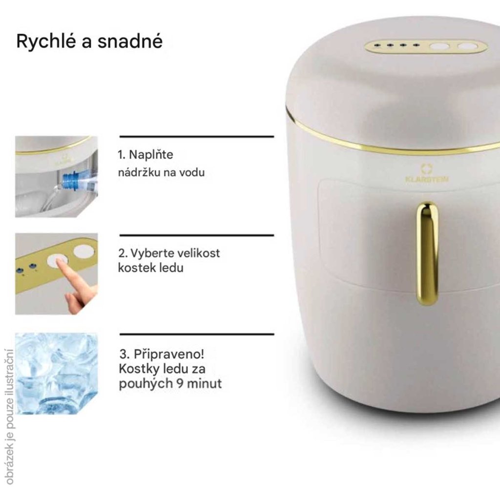 - Výroba přibližně 10 kostek ledu (L) za 9 minut
